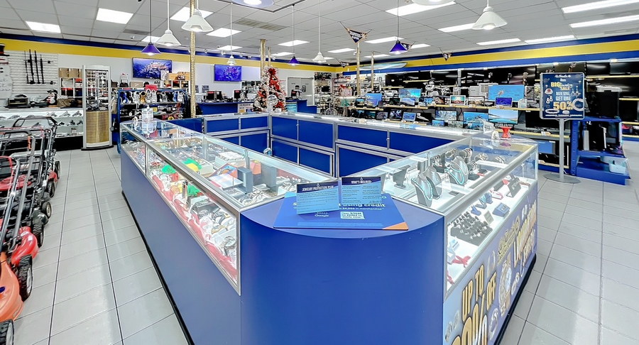 Clean, modern interiors feature clearly displayed, high-quality merchandise ranging from fine jewelry and watches to electronics, musical instruments, and tools-each item carefully appraised, cleaned, and presented with transparent pricing.